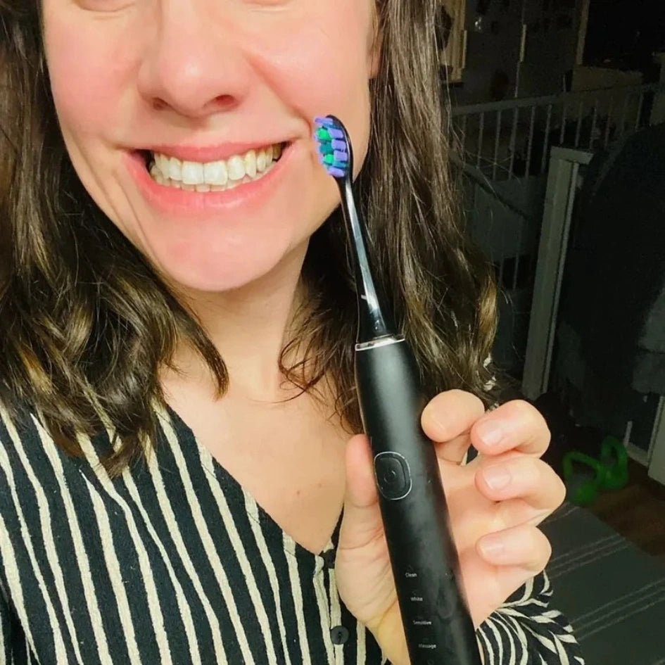 Batteritid: Vår tandborste erbjuder en 365 dagars batteritid på en enda laddning! Till skillnad från andra varumärken som har batterier som varar mellan 7 till 21 dagar, kan du lita på att vår tandborste håller mycket längre, vilket minskar behovet av frekventa laddningar.